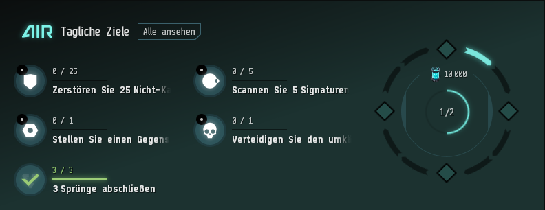 Die monatliche Aufgabenstrecke beginnt am Ersten jeden Monats um 0 Uhr Eve Time. Wer an diesem Vormittag zwei Aufgaben erfüllt und nach der Downtime nochmal zwei, kann an einem Tag schonmal zwei der 12 Aufgaben abhaken.